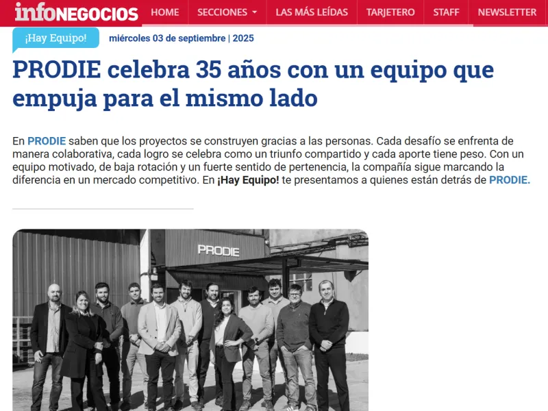 El portal InfoNegocios destacó a PRODIE en su nota “Hay equipo”, resaltando nuestra trayectoria y el compromiso con el desarrollo de proyectos eléctricos y civiles en Uruguay.